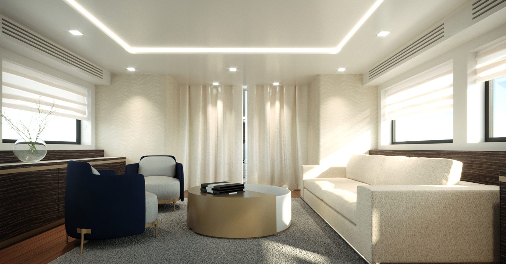 L’incontro con l’armatore è avvenuto a bordo dello yacht stesso, di sua proprietà da lungo tempo. Il desiderio del cliente era quello di realizzare una barca dallo stile vintage, differenziando lo stile del Lower Deck rispetto al resto delle cabine.